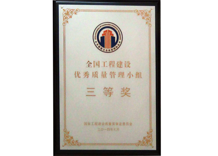 全國工程建設優(yōu)秀質(zhì)量管理小組三等獎